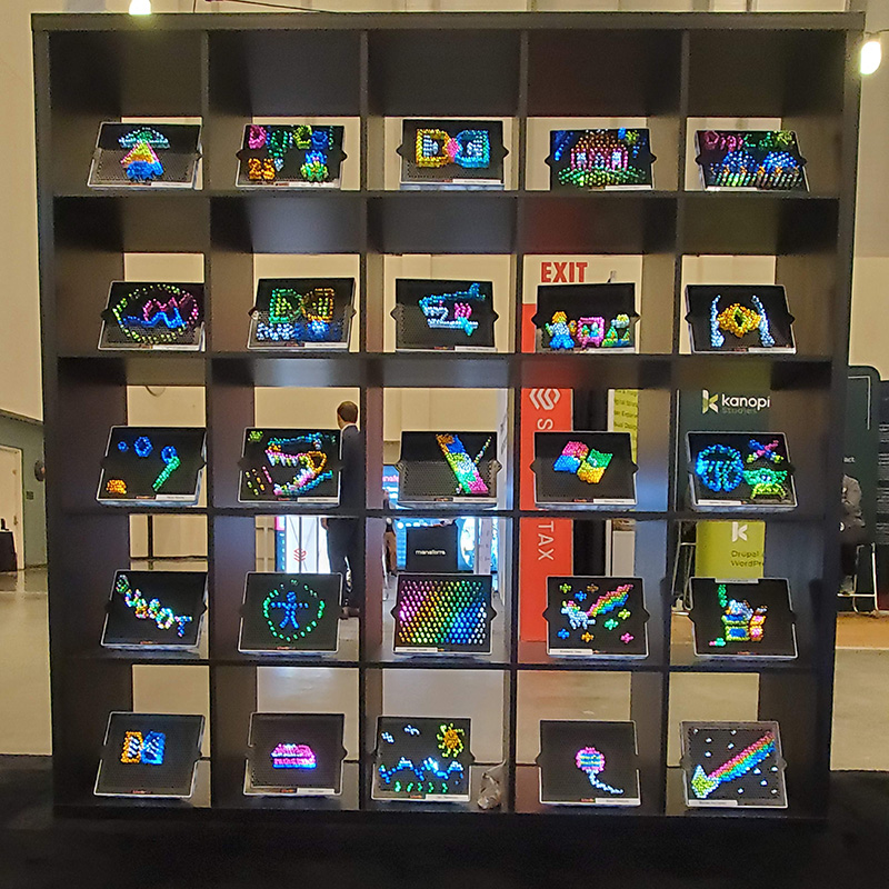 Will we ever do it again? Probably not. We hadn’t considered the need to put batteries in all of those Lite Brites until we got to the conference. That led us to scrambling to put three AAAs into each Lite Brite before the show actually opened. It was still worth it in the end.
