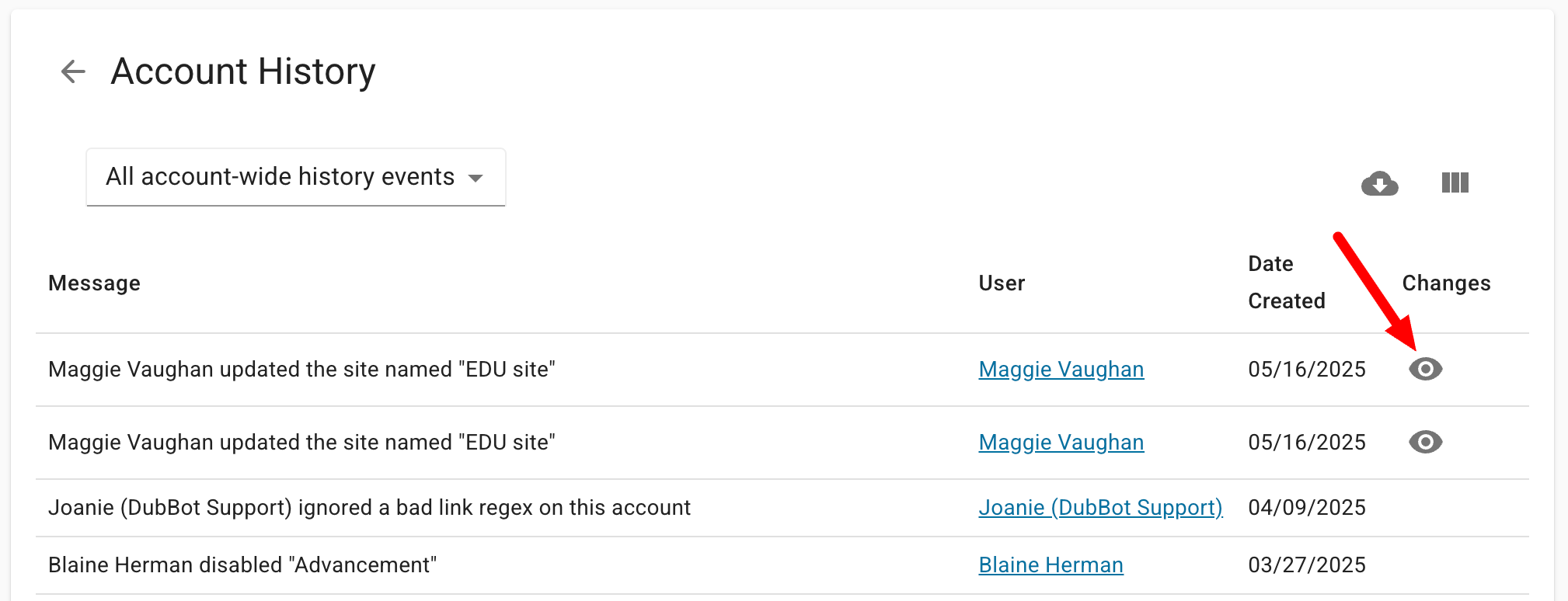 That’s right! If you can access Account History in DubBot, you can now track site changes! 🎉