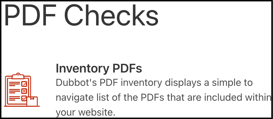 The clipboard icon to the left of the text is purely decorative and does not provide any additional or critical information about DubBot's PDF inventory.